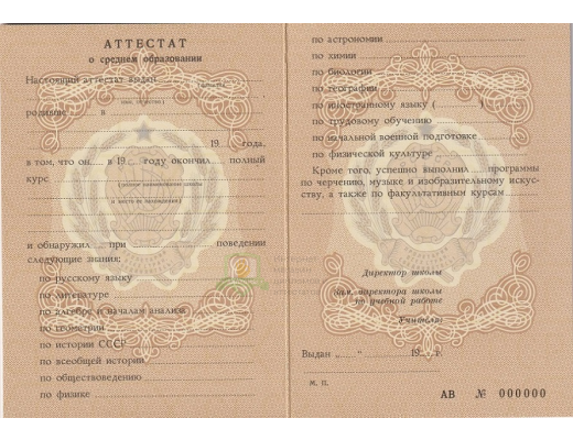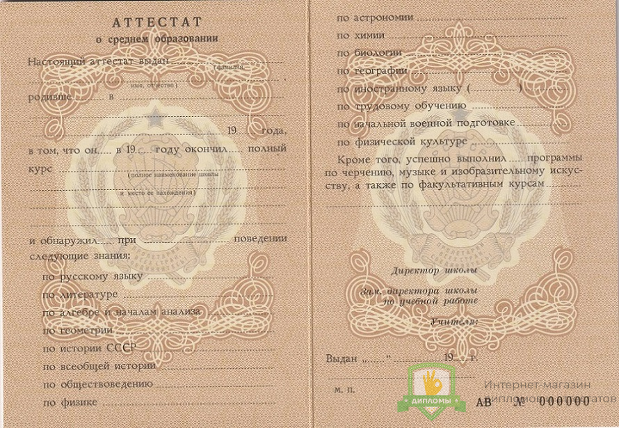 • при необходимости можно сделать заказ аттестатов за 10 класс 1972 - 1989 год прошлых лет выпуска;