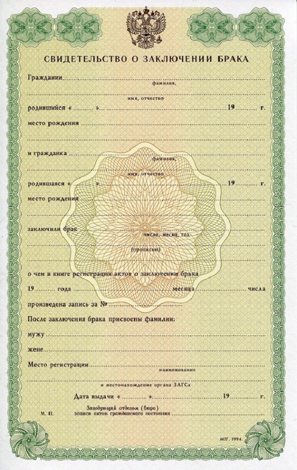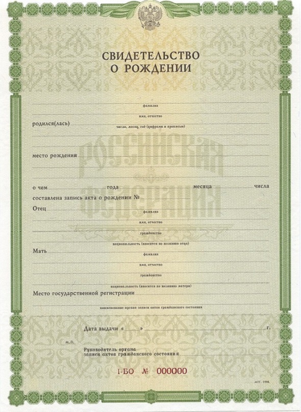 • Оригинальный бланк ГОЗНАК