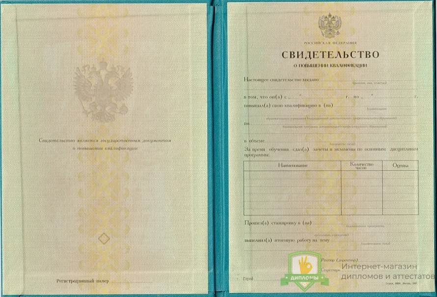 Купить свидетельство о повышении квалификации 1996 - 2012 год