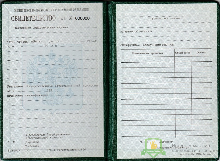 Прибрести свидетельство о повышении квалификации СССР до 1995 год вы можете в компании «ОК-Дипломы». Работаем на профильном рынке более 20 лет, предлагая клиентам высококачественный сервис и разумные цены. У нас свидетельство о повышении квалификации СССР до 1995 год выполняется на оригинальном бланке Гознак, дополняется подлинными подписями и печатями.